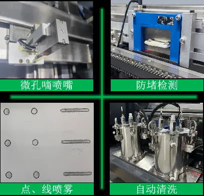 采用微孔滴噴嘴,130um直徑,噴射范圍2~8mm。伺服電機運動控制,點對點式噴射,大量節(jié)約助焊劑使用,噴射精度±0.25mm。標配噴嘴防堵檢測、自動清洗功能。