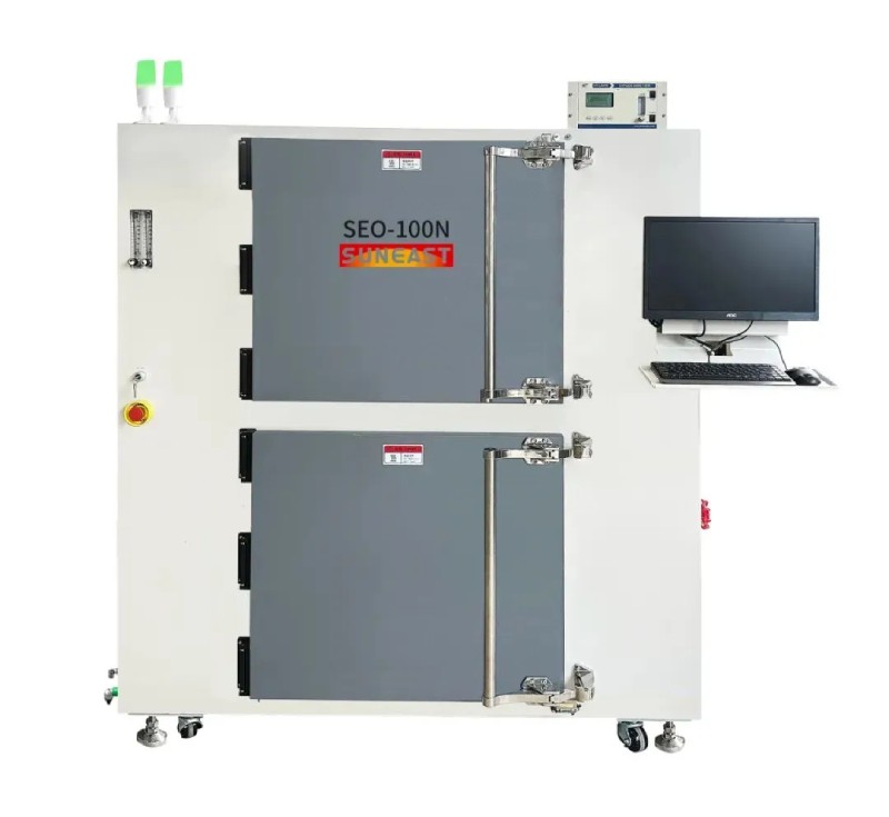 半導體充氮烤箱SEO-100N通用性強,具有高穩定性和高性能,采用高容量水平空氣再循環系統,采用專有的腔室結構和密封技術,具有出色的氣密性和溫度均勻性,滿足半導體產品高性能要求。此烤箱適用于固化半導體晶圓、IC封裝(銅基板,銀膠,硅膠,環氧樹脂)、玻璃基板等產品烘烤