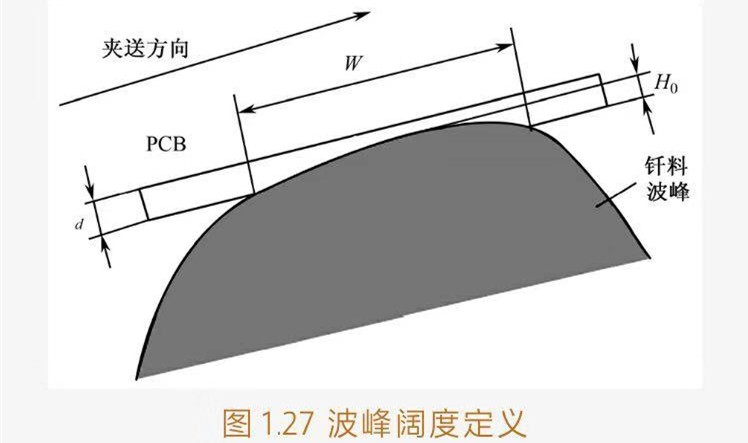 ①定義:當(dāng)波峰高度處于正常作高度Ho(如7~8mm),PCB(板厚為d)位于其上且壓波峰的深度為2d/3時,沿傳送方向PCB下表面與波峰接蝕的長度稱為波峰的闊度。